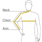 | Arm | 30-30 3/4 | 30 3/4-31 1/2 | 31 1/2-32 | 32-32 1/2 | 32 1/2-33 | 33-33 3/8 | 33 3/8-33 3/4 | 33 3/4-34 1/2 |