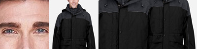- Contrast: nylon taslon overlay on upper panel and lower arms