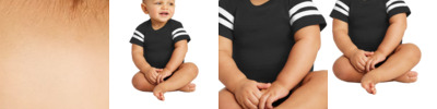 Now the youngest fan is ready to cheer on the team. Designed with contrasting sleeve stripes and coverstitched yoke, this bodysuit has a sporty look and exceptional comfort.